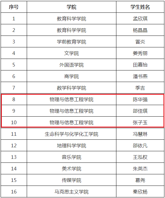 长期以来,物信学院坚持落实立德树人根本任务,致力于培养“有理想、敢担当、能吃苦、肯奋斗”的新时代好青年。本次评选中,我院3位学子脱颖而出,进一步彰显了我院的育人成效!