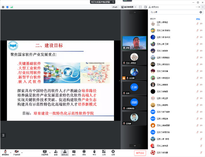 6月25日,教育部软件工程专业教指委副主任委员卢苇教授应江苏第二师范学院数信学院和江苏理工学院计算机工程学院共同邀请,在腾讯会议上为两个学院教师作了题为“特色化软件学院的建设与发展”的学术报告。